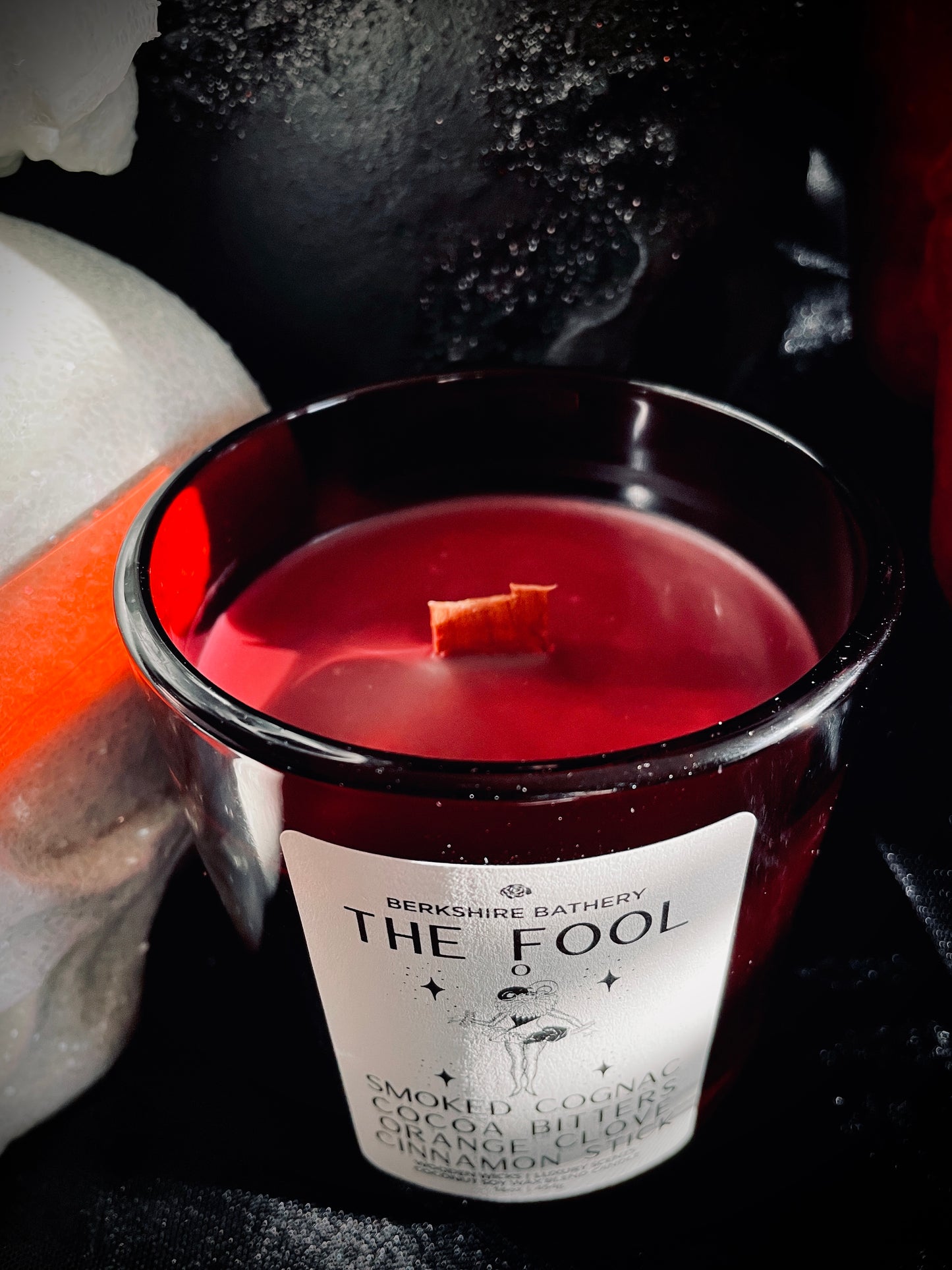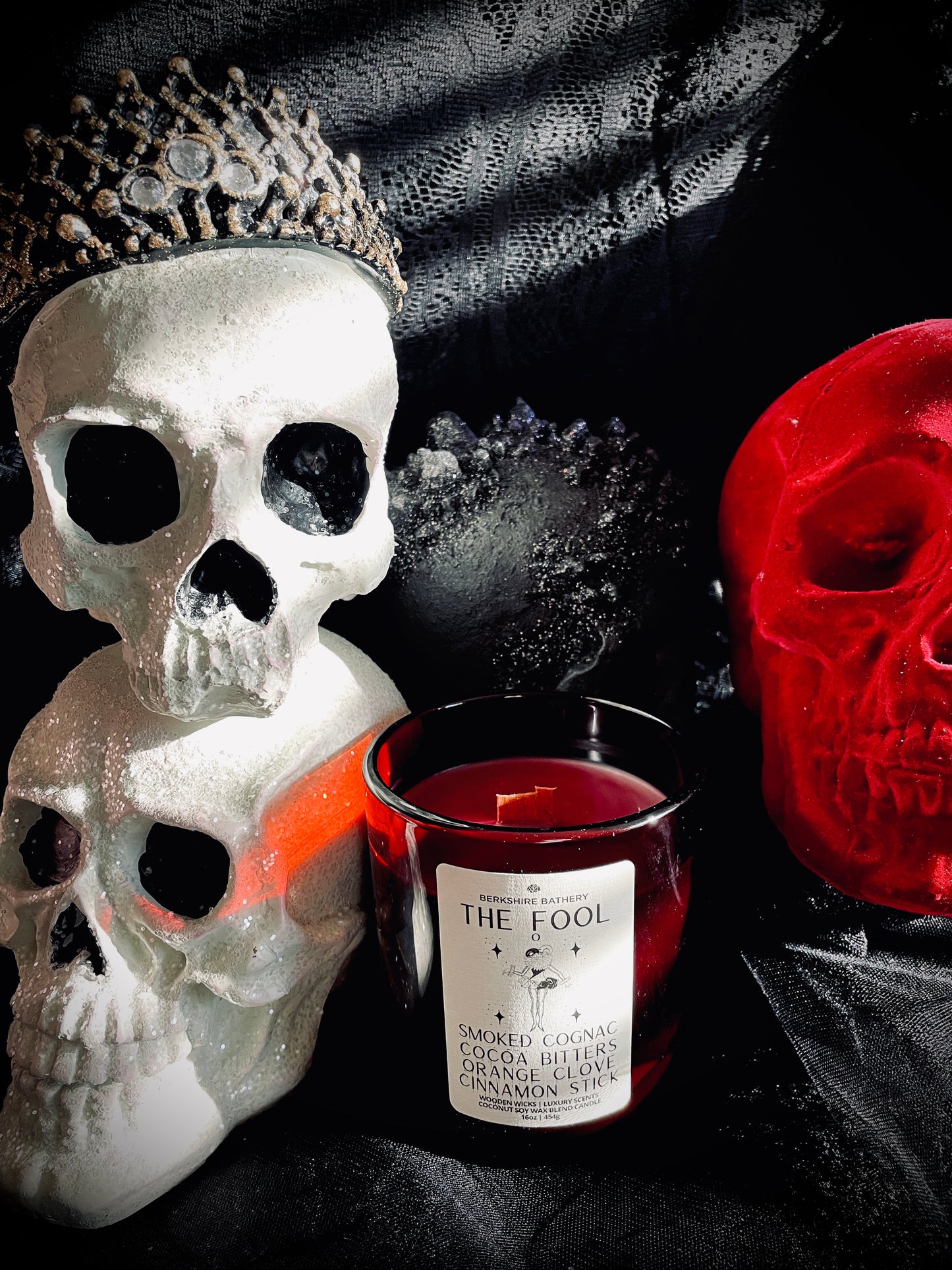 Looks like: Glossy blood red glass vessel, silky blood red coconut soy wax nestled around a crackling wooden wick.