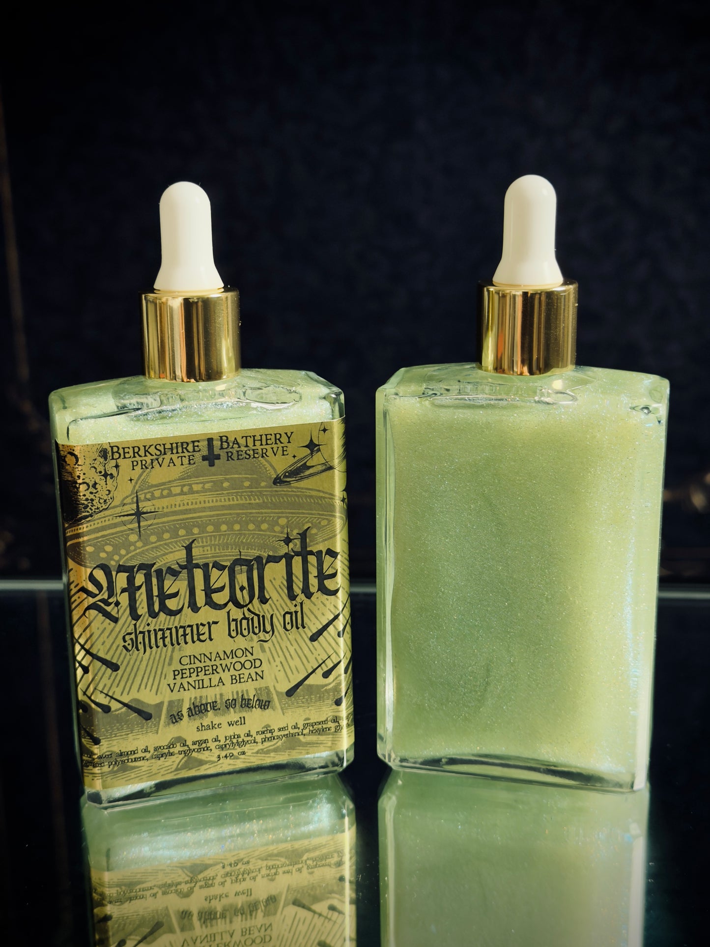Scented antioxidant-rich oils blended with cosmetic grade micas for a sickening high payoff shimmer.