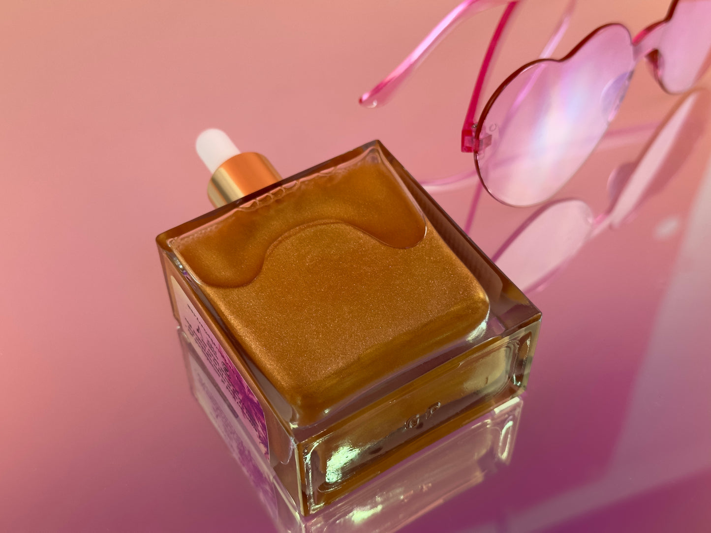 Perfect for: Dry skin, anytime you want a hint of shimmer like a golden goddess, or any time you need a moisture boost (especially after shaving!). Also wonderful on damp skin directly after a shower. Skin looks amazing in the sun and under sexy mood lighting. Can't beat that pore-blurring glow!